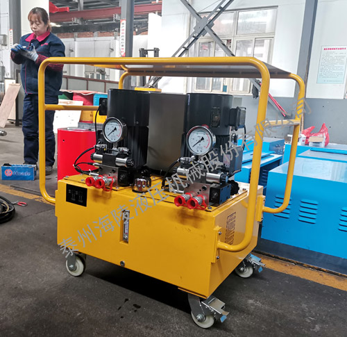 我公司生產的超高壓泵站采用符合液壓系統要求的液壓油作媒介,由電機經泵柱塞泵送出符合要求流量與壓力,供液壓系統使用。超高壓液壓泵站主要由三相電機、減功閥,高低壓溢流閥、軸向柱塞泵、手動換向閥、液控單向閥、綜合閥、油箱、等部件組成